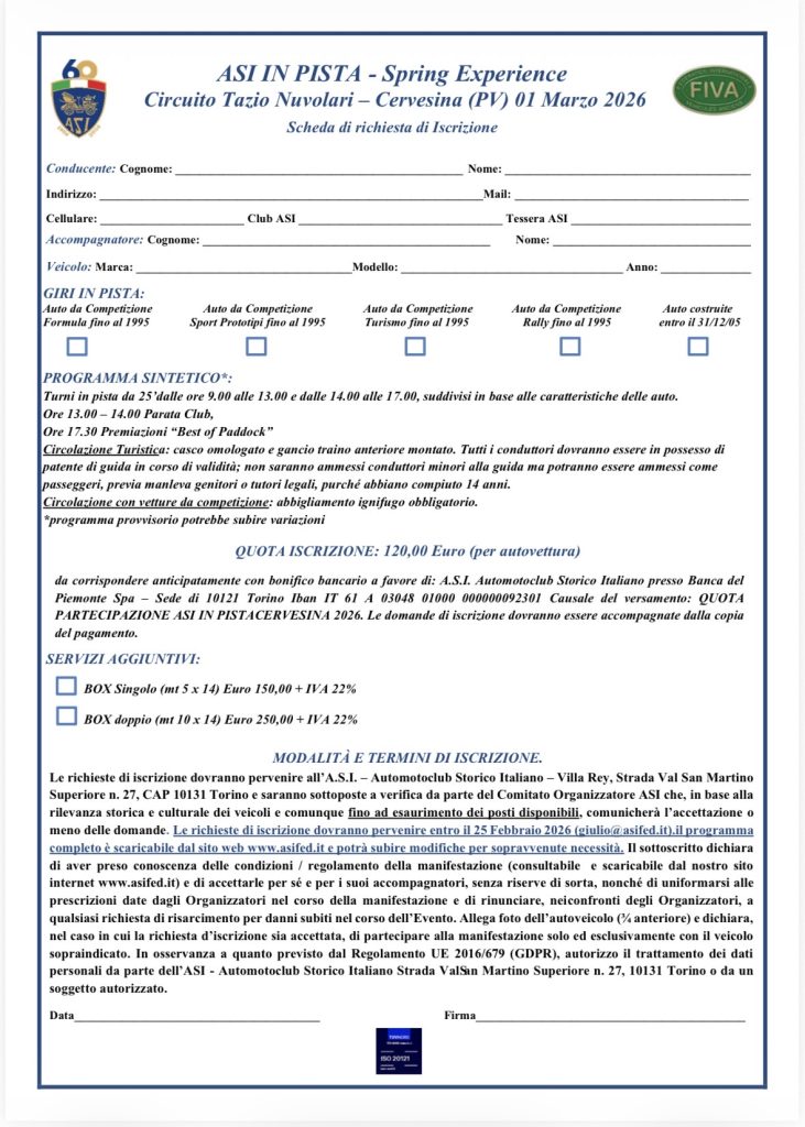 Domenica 1° marzo 2026 torna l’appuntamento con “ASI in Pista Spring Experience”, lo speciale track day organizzato dall’ASI all’Autodromo Tazio Nuvolari di Cervesina (PV).